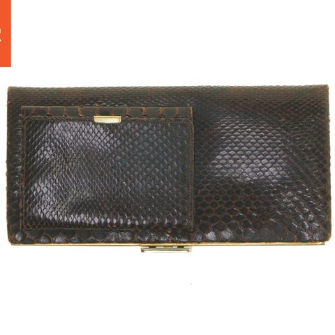 Elegant beige clutch with a textured crocodile pattern and gold-tone corner accents. The clutch is designed to hold essentials such as a wallet, phone, and keys, perfect for formal occasions or an evening out. It features a flap opening for secure storage and a streamlined look. The dimensions of this clutch are 28x14 cm.