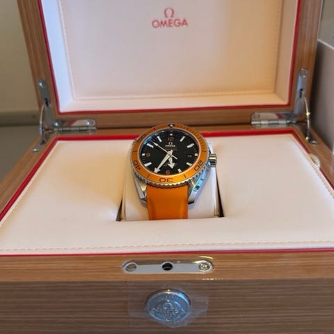 Rigtig fin Omega Planet Ocean med keramisk lynette. Uret måler 39,5 mm og er med automatisk optræk. Vejl. nypris er 60.400 kr, så mange penge at spare.Det er med åbne papir (der er ikke sat dato i certifikat).