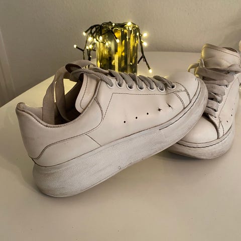 Alexander McQueen Sneakers i størrelse 37. Skoene er sorte og har en hvid sål. Materialet er ikke specificeret. Designet er unisex. De er som nye, kun brugt få gange. Virkelig pæne. Kostede 3000,-