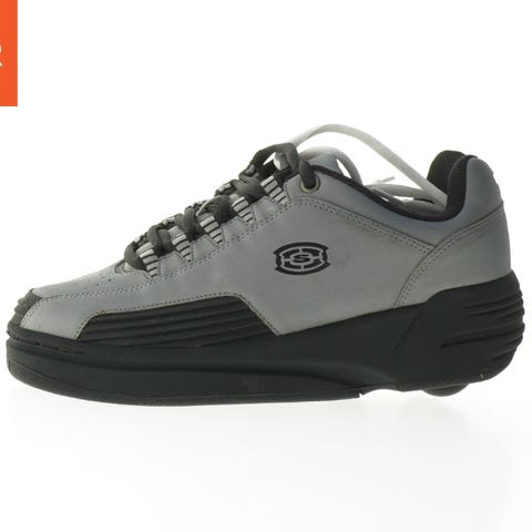 Disse sko er designet til at fungere som rullesko, med integrerede hjul i sålen. De har en udvendig grå farvetone med sorte detaljer og sorte snørebånd. Skoene har en robust konstruktion med en non-marking ydersål, ideel til indendørs brug og glidende bevægelse. De er størrelse 42,5 og har et logo både på siden og i indersålen.
