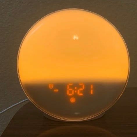 Et Rosenborg vækkeur med en kvarts bevægelse. Uret har en analog urskive med tydelige tal og en lys snooze-knap på siden. Det har en On/Off-knap på toppen og et batterirum på bagsiden. Uret kan spille melodier og har en klokkealarm funktion.