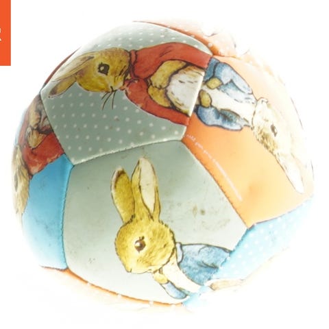 Den hæklede og broderede legebold har en størrelse på 20 cm og viser forskellige tegneseriefigurer på hver side, herunder en bjørn, kanin og havfrue, klokkeblomst og Hello Kitty.