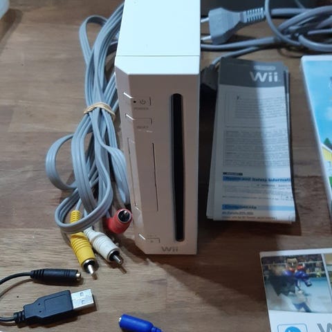 Nintendo Wii RVL-001 ModMii installed (Strømforsyning, Remote-bar, Videokabel)