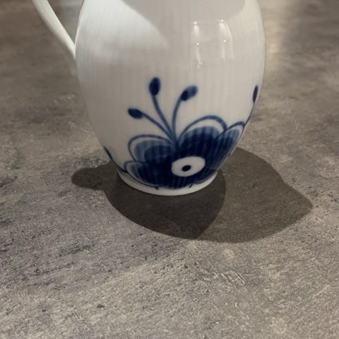 Royal Copenhagen Musselmalet Riflet kande med klassisk blå og hvid mønster.
