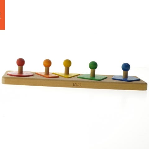 Dette er et træpuslespil designet til små børn, med numrene 0-9, hver i en unik farve med forskellige mønstre som prikker, stjerner og hjerter. Puslespillet har små håndtag på hvert nummer, der gør det nemt for børn at løfte og placere brikkerne. Det er farverigt og tiltalende for børn, samtidig med at det hjælper med at lære talgenkendelse og finmotoriske færdigheder.