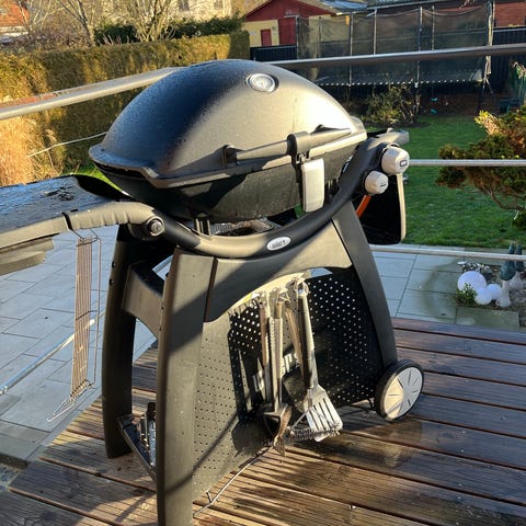 Fantastisk grill, som stadig fungerer som ny efter 3 sæsoner. Den har altid stået under grill overtræk/cover, og som billederne afslører så trænger den blot til en hurtig rengøring med klud og grillbørste.