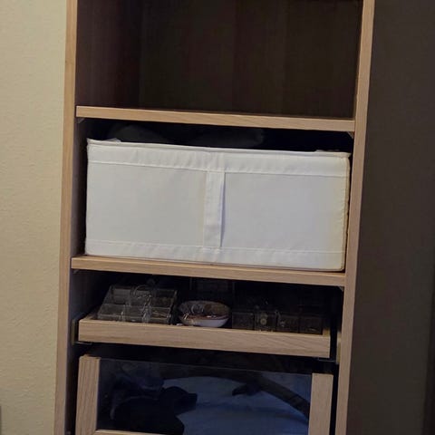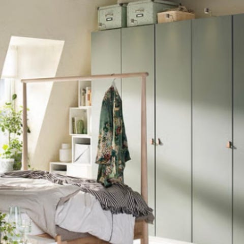 Låger i mat støvet grønlig farve med håndtag i læder.