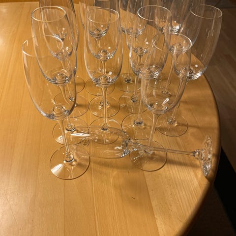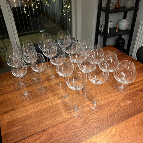 12 stk rødvinsglas og 12 stk hvidvinsglas.