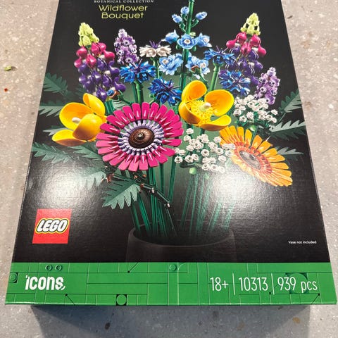 LEGO Brick Botanicals byggeklodser sæt med forskellige farvede blomster i klodser, designet til at bygge botaniske motiver. Materiale: plastik. Farver: rød, lilla, orange, hvid, grøn.