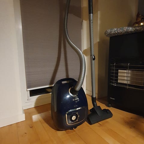Lille kompakt effektiv støvsuger, fungerer upåklageligt.