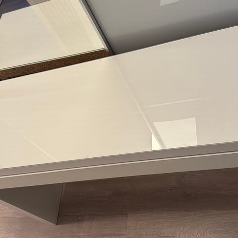 Sminkebord fra IKEA med glasplade. Skuffe lidt løs.