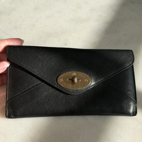 Mulberry læder taske . Tasken er fremstillet i læder og har detaljer i metal. Den har en justerbar rem til kort nøgle og læbestift