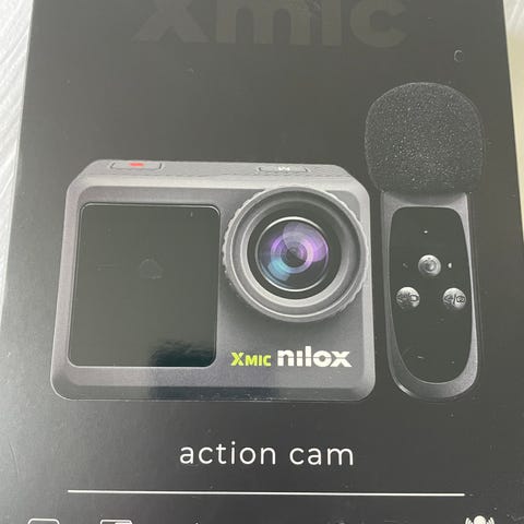 Fint kamera med diverse remme og holdere til at montere kameraet på cykelhjelm, skihjelm, cykelstyr m.m.