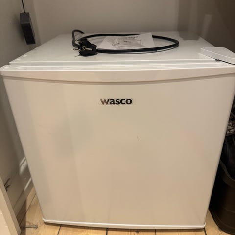 Wasco køleskab i hvid farve. Køleskabet har et enkelt design med hylder og opbevaringsrum i døren. Velegnet til mindre opbevaringsbehov. Kun brugt i forbindelse med køkkenrenovering. Fremstår som nyt.