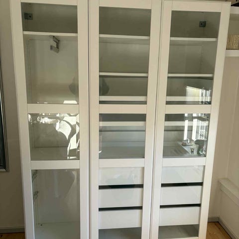 Én trådkurv + en hylde + bøjlestang følger med (træskufferne følger ikke med).
