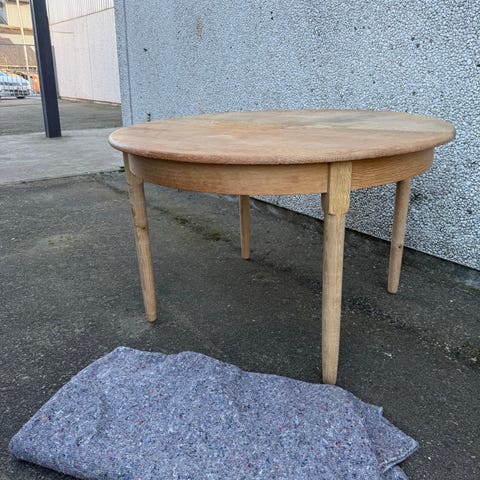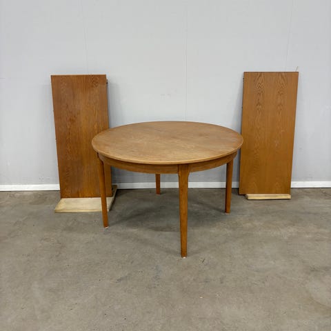 Flot rundt massivt egetræsspisebord. Sæbebehandlet - diameter 90cm.