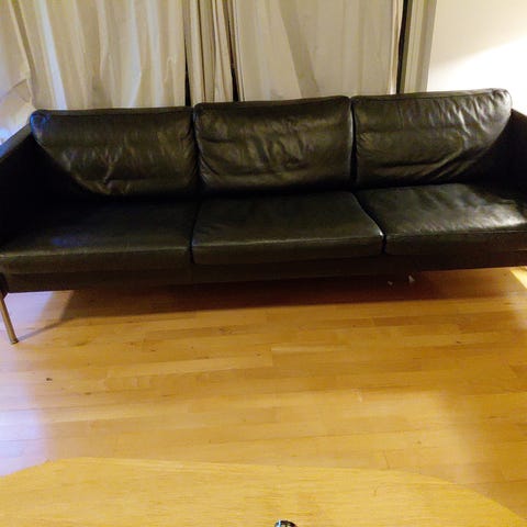 Sofaen kommer fra et røgfrit og dyrefrit hjem. Den har altid været passet med læderpleje.