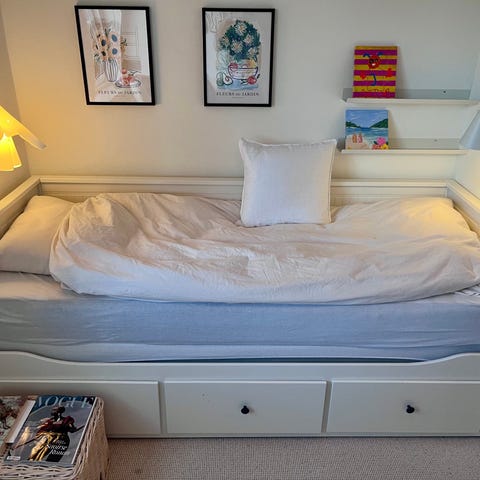 God og fin Ikea Hemnes seng og sovesofa. Brugt ca 2 år af vores datter. Sengen kan let foldes ud, så der bliver plads til en ekstra person og rummet desuden stor opbevaringsplads i de tre skuffer. Passer til en 80x200 madras, som kan tilkøbes.