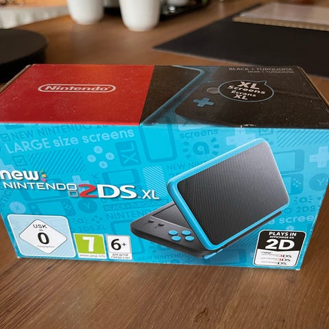 Nintendo New Nintendo 2DS XL konsol i orange og hvid farve. Produktet er egnet til Nintendo 3DS spil og har en stor skærm i 2D-format. Konsollen er designet til håndholdt brug og tilbyder kompatibilitet med et bredt udvalg af spil fra Nintendo 3DS-serien.