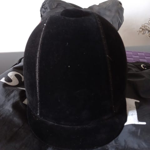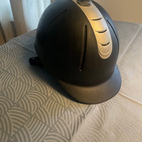 Supreme Equestrian Div. ridehjelm i størrelse 54-56 cm. Hjelmen er sort og designet til ridning med justerbar strop for sikker pasform.