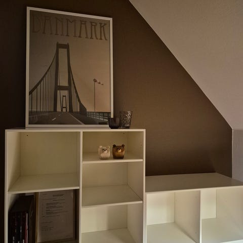 Kubik trævarefabrikkens udsalg reol / reolkasse trænger til en klud. Helt ok stand. Ubehandlet.