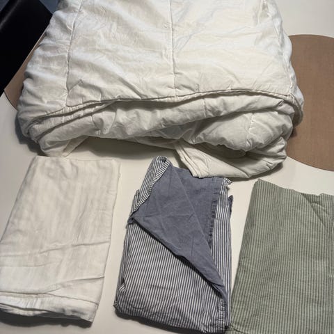 Helt ny uåbnet blåstribet sengetøj af modellen BERGPALM til dobbeltdyne fra IKEA.