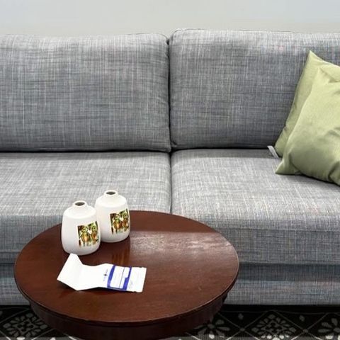 Sofaen er skilt ad og kan hentes på Guldborgvej på Frederiksberg.