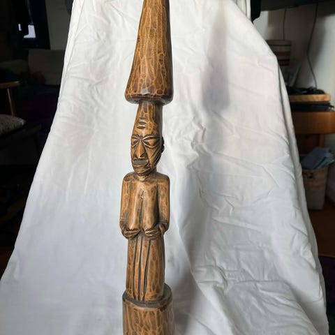 Sælger denne utroligt smukke og detaljerede afrikanske figur. Den er håndskåret i en flot, varm træsort med masser af sjæl og karakter. Figuren forestiller en tænkende mand og har et meget udtryksfuldt ansigt.