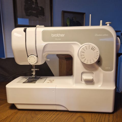 Det er krogen, der henter tråden fra under spolehuset, hvor spidsen er knækket af. Det medfører at den kun ganske få gange kan lave et sting. Den springer flere sting over i sømmene.