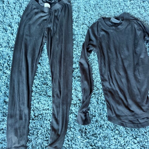 Børnetøj sæt i størrelse 140, blå farve. Sættet består af en langærmet overdel og bukser, egnet til sportstype Andet. Vi har 2 sæt til salg 50 kr pr sæt