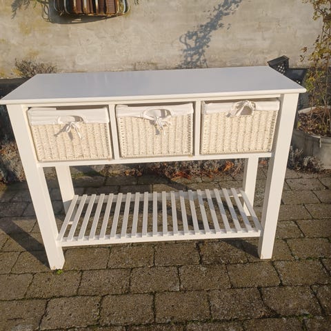 Konsolbord med 2 skuffer i sort malet træ og stålramme i sprt