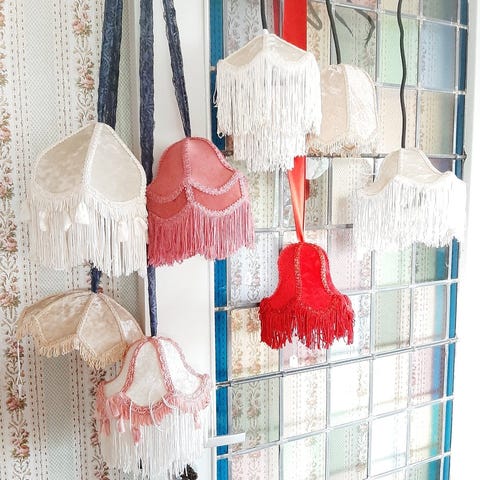 Super flot cover til lampeskærm i Liberty stof. Rispapirlampe kan medfølge