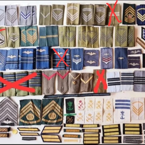280+ stofmærker fra militære afdelinger og gamle gradstegn ubrugte