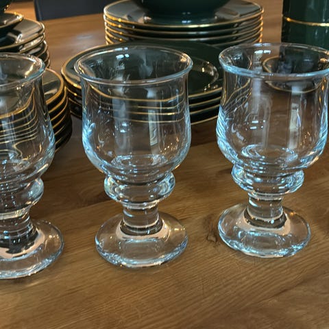 Holmegaard vinglas i klart glas. Sættet indeholder flere glas, der kan anvendes til servering af vin.