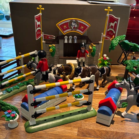 Pokaler, springbane, podie samt 2 stævneheste og ryttere