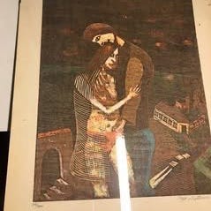Lastbil i bevægelseFiks færdig1.000 kr.Litografi, Seppo Mattinen, motiv: Par ved bordBrandeFøj til favoritter.