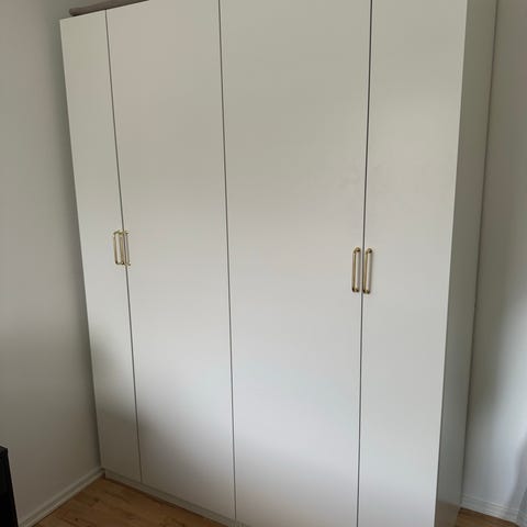 Vi sælger vores to ikea pax skabe på 150 cm bredde, 236 cm høje og 58 dybe.
