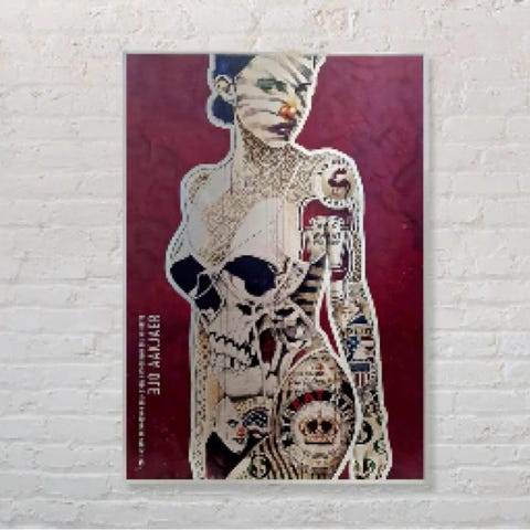 trykket er giclée på aluminium som gør værkerne langtids holdbare og de skal ikke i rammer, trykteknikken gør at de har et fedt metallisk udtryk som er svært at gengive på foto, værket har ikke været oppe og hænge, det kommer med ophæng bagpå og afstandspuder til væg.