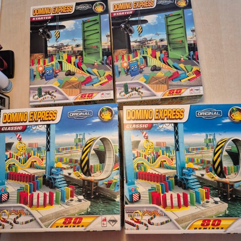 Domio til salg mellem 250 og 300 løse domino og de tin, som ses på billederne medfølger.