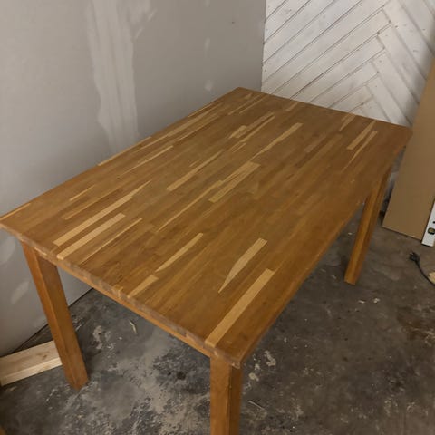 Bordet er i god stand med almindelige brugsspor. Robust konstruktion og god plads til både hverdag og gæster.