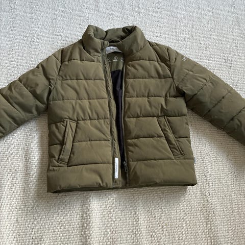 Str. 158/164. Brugt få gange. Mål: Længde målt bagpå fra nakken og ned ca. 61 cm. Indvendig ærmelængde ca. 50 cm.