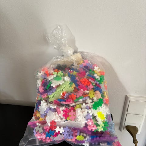Plus Plus byggeklodser til børn i forskellige farver. Klodserne kan sammensættes til forskellige former og figurer. Ca. 1000 stk.