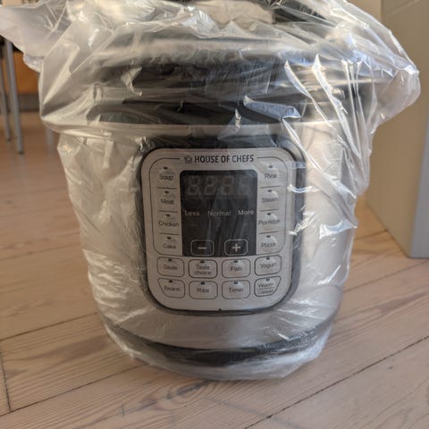 Instant Pot Duo 5,7 L multikoger / trykkogeri i sølv farve. Helt ny og ubrugt da vi fik den i forkert størrelse. Må gerne sælges hurtigst muligt.