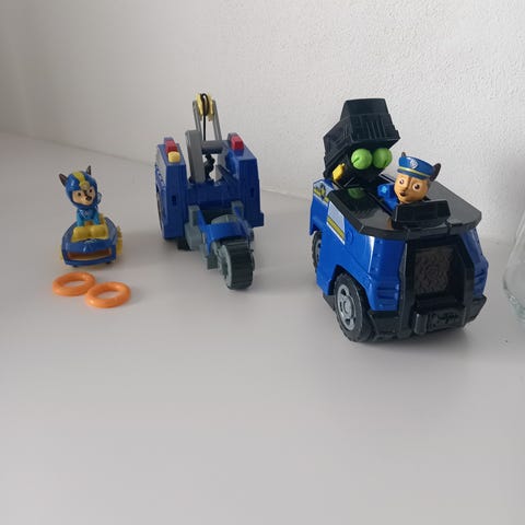 Paw Patrol Polar Rescue Truck legetøj i hvid og blå med seks hjul. Inkluderer flere små figurer til leg.