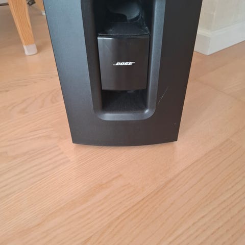 Trådløs subwoofer, vægophæng og universalfjenbetjening medfølger.