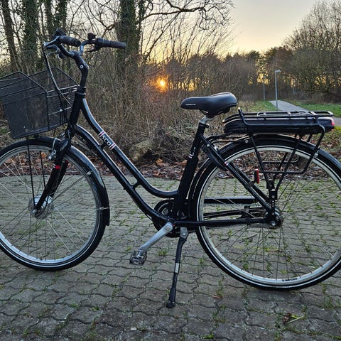 Brugt Max 4 gange - står som ny - lås, lygter, kurv er med (lader medfølger ikke) derfor laver pris