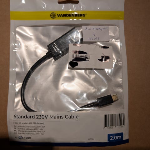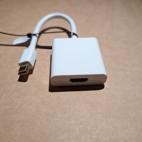 Adapterkabel med mini DisplayPort til HDMI forbindelse. Kabel med kort længde, designet til at forbinde kompatible enheder med Mini DisplayPort-porte.