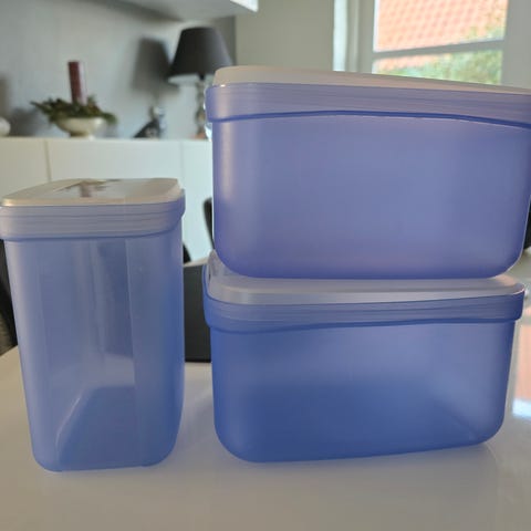 Tupperware opbevaringsbøtter, 3 styk 1,25 liter og 3 styk 0,5 liter