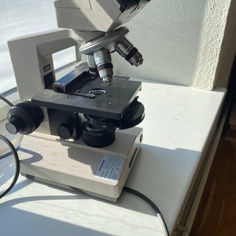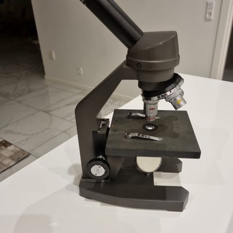 Agiscop DT mikroskop med tilbehør, inklusive kasse, kabler og manual. Anvendeligt til søge punkt i øre akupunktur