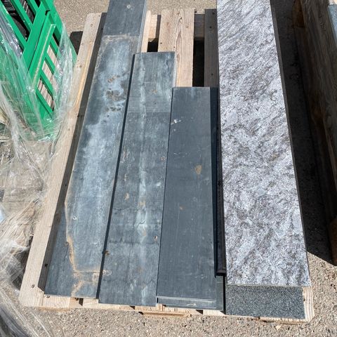 Solbænk sort fiber, 2 stk 15x 100 15 mm tyk 9 stk 15x114 cn og 10 stk 15 x65 cn plan model samt flere murafdækning